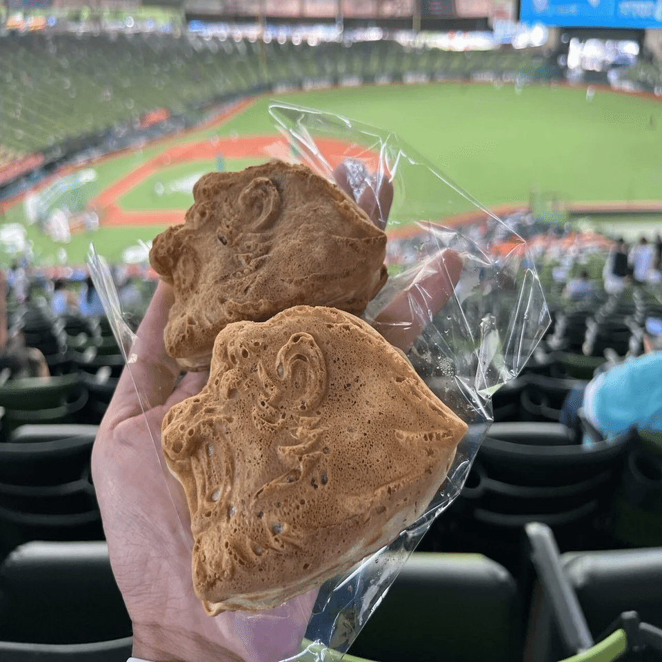 必ず食べたいのがジャイアンツ・キュロス500円。東京ドームで販売しておらず、ジャイアンツ球場のアイデンティティ。Sweet Emotion。