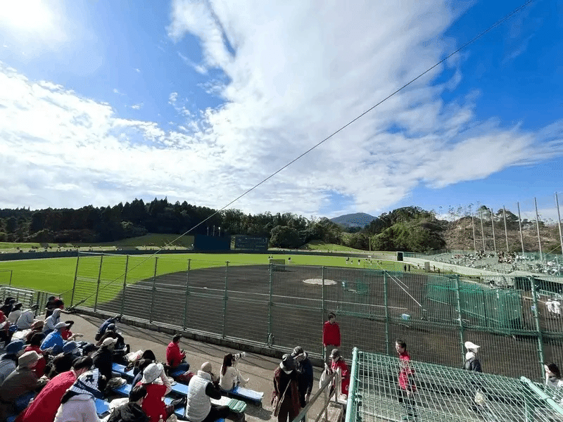 人口3万人弱、北には美しい清武川が流れ、南は山頂から日向灘を望む荒平山に挟まれた宮崎市清武町にあるスタジアム。最寄りの清武駅からは徒歩40ほどかかる。黒潮が流れる太平洋まで4キロと近く、雨は多いが温暖な気候から秋の侍ジャパンの合宿地となっている。