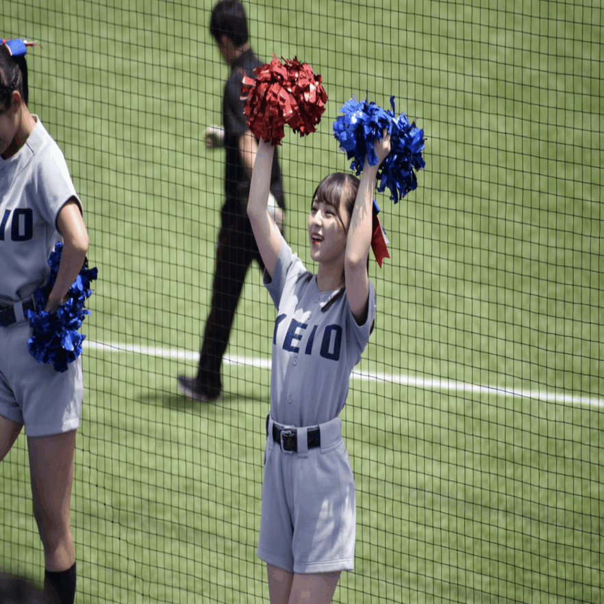 応援は早慶のような華美さはなく、応援団、吹奏楽バトントワリング部、そしてアメリカのチョコレートから名前をとった体育系チアリーディング部REESES<リーセス>が盛り上げる。