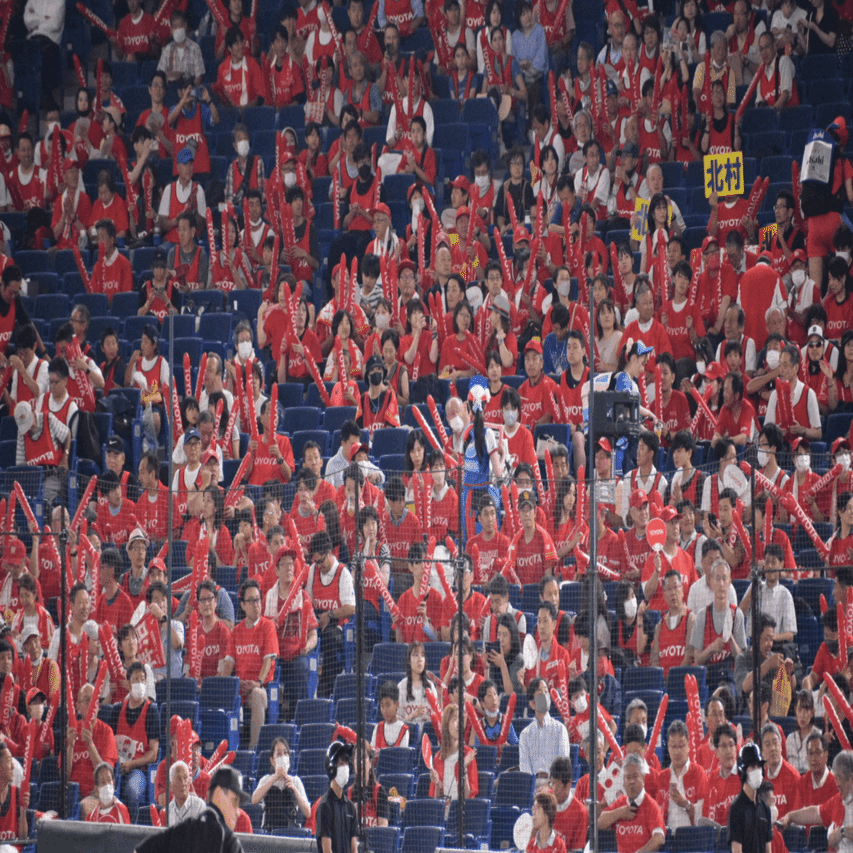 お祭りムードとはこのこと。ヴィクトリーレッドのトヨタには夏祭りが似合う。なぜジッタリン・ジンの『夏祭り』を応援歌にしない?